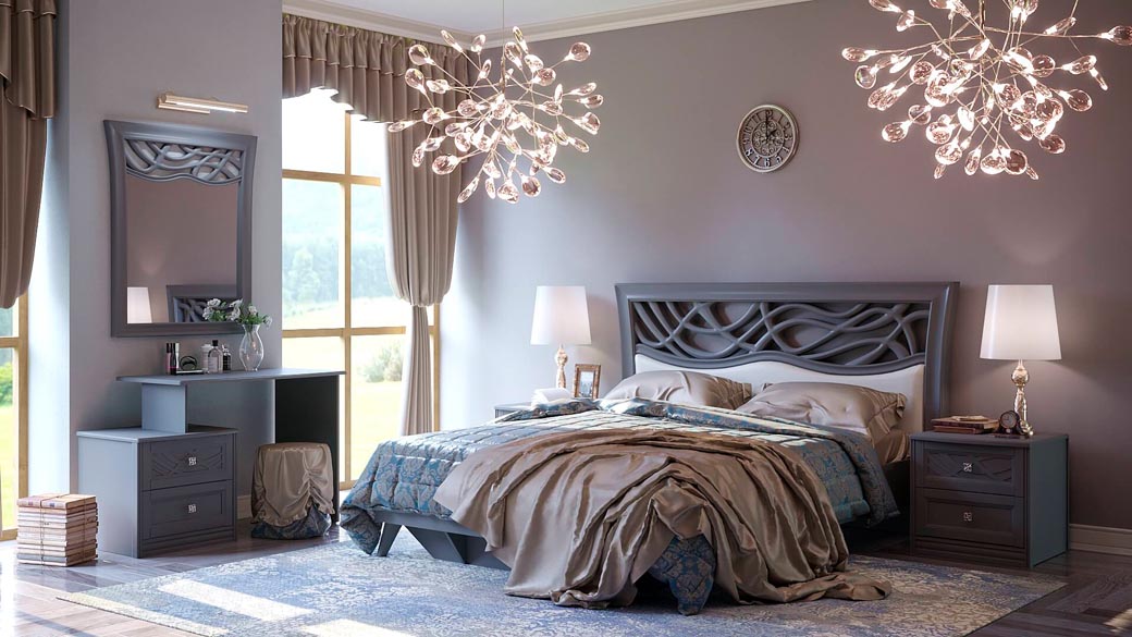 Цветовая палитра подчиняется общим канонам классики. Актуальны сдержанные и благородные оттенки: кремовый, сливочный, приглушенный золотой, пудровый, шоколадный, насыщенный винный или глубокий изумрудный. Такие цвета создают спокойную, умиротворяющую обстановку, способствующую полноценному отдыху. Кровать обычно выполняется в одном из этих оттенков, гармонируя или составляя изящный контраст с общей отделкой стен и текстилем.
