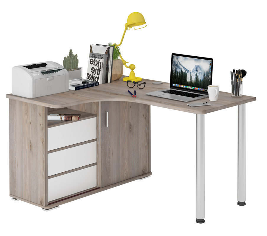 • - Угловой Комбинированный компьютерный стол имеет 1 дверь ( одну глухую ) три выдвижных ящика с использованием механизма полного выдвижения и плавного закрывания, дно ящика выполнено из ЛДВП в цвет корпуса