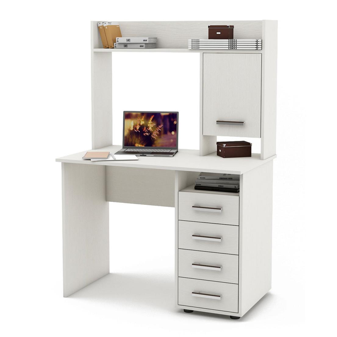 • - Прямой Белый компьютерный стол имеет 1 дверь ( одну глухую ) четыре выдвижных ящика с использованием механизма полного выдвижения и плавного закрывания, дно ящика выполнено из ЛДВП в цвет корпуса