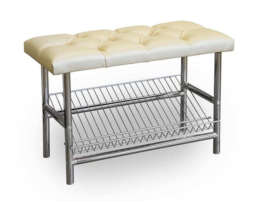 Обувница оборудована мягким сидением и полкой для обуви. Каркас металлический.