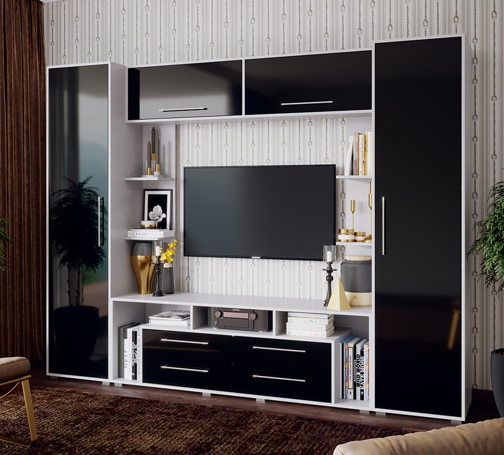 Вопросы и отзывы о товаре: Гостиная Гармония МДФ (Миф) Черный Глянец/Белый