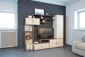 • - Данная модель состоит из стеллажа, тумбы под ТВ и полки,