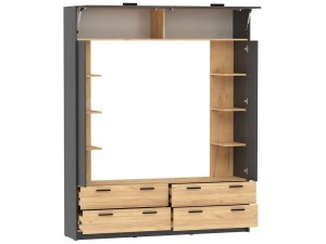 четыре выдвижных ящика с использованием механизма полного выдвижения и плавного закрывания, дно ящика выполнено из ЛДВП в цвет корпуса