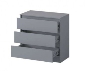 три выдвижных ящика с использованием механизма полного выдвижения и плавного закрывания, дно ящика выполнено из ЛДВП в цвет корпуса