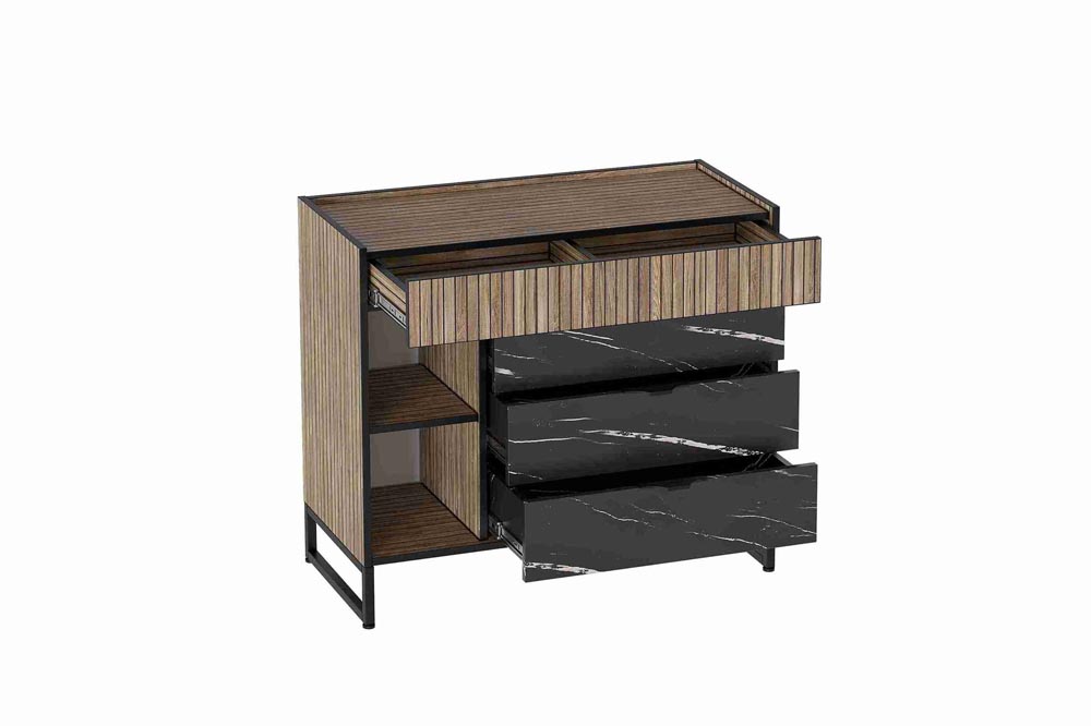 • четыре выдвижных ящика с использованием механизма полного выдвижения и плавного закрывания, дно ящика выполнено из ЛДВП в цвет корпуса