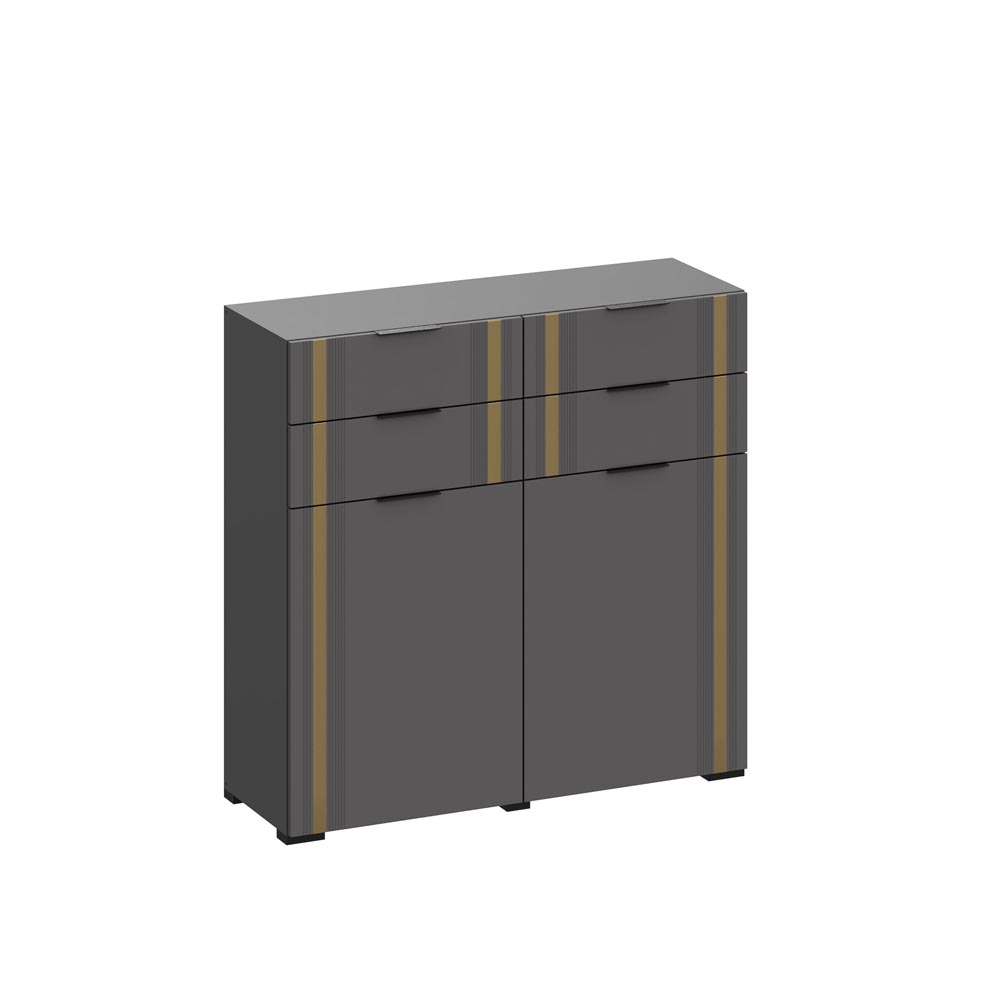 четыре выдвижных ящика с использованием механизма полного выдвижения и плавного закрывания, дно ящика выполнено из ЛДВП в цвет корпуса