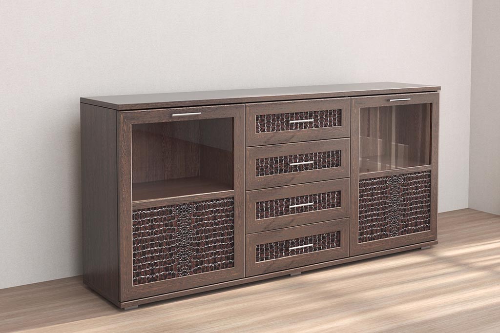 • - Прямой Темный комод-тумба имеет две двери ( две комбинированных ) четыре выдвижных ящика с использованием механизма полного выдвижения и плавного закрывания, дно ящика выполнено из ЛДВП в цвет корпуса