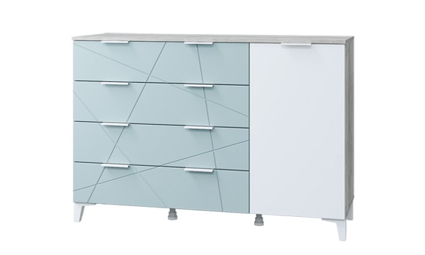 четыре выдвижных ящика с использованием механизма полного выдвижения и плавного закрывания, дно ящика выполнено из ЛДВП в цвет корпуса