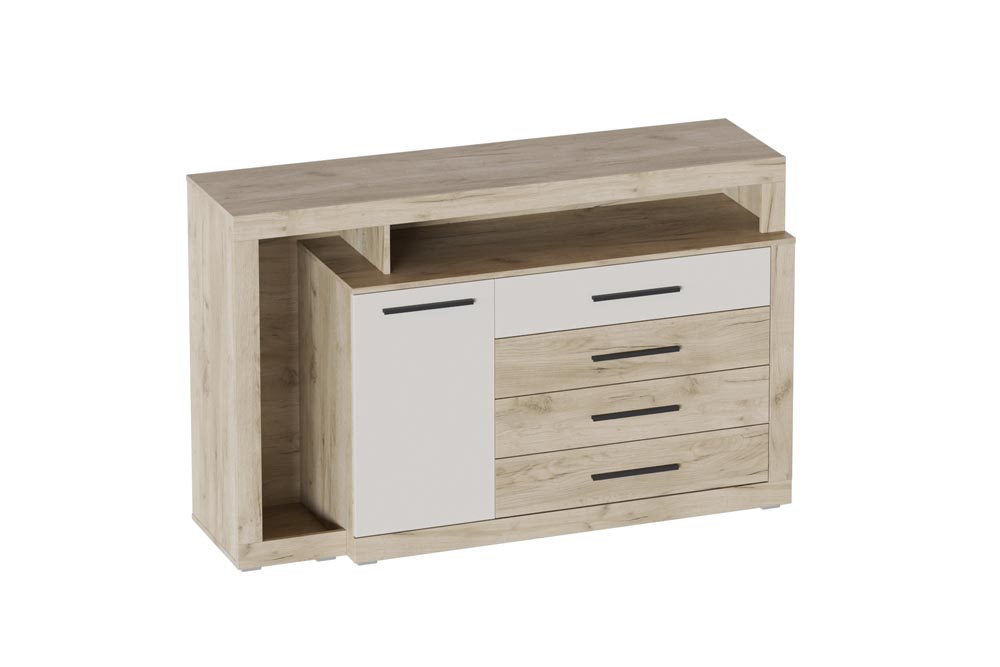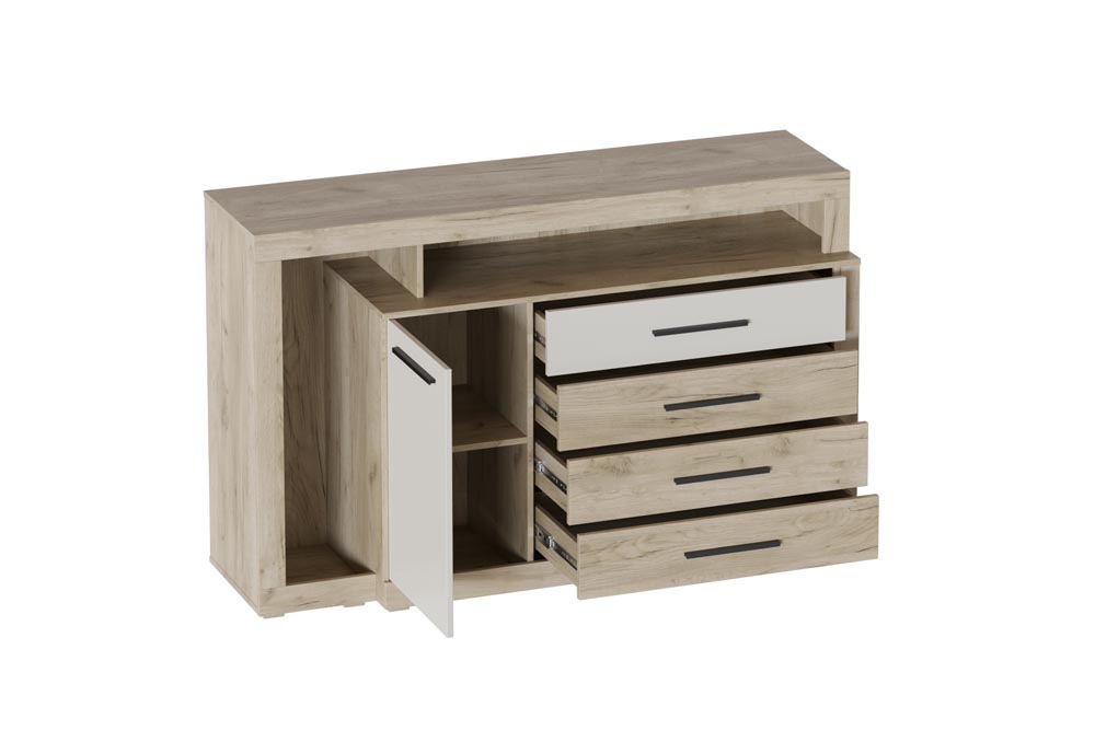 четыре выдвижных ящика с использованием механизма полного выдвижения и плавного закрывания, дно ящика выполнено из ЛДВП в цвет корпуса
