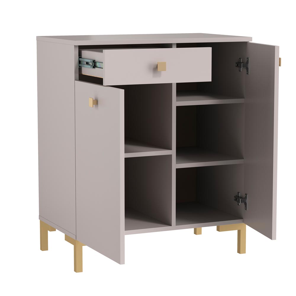 • - Прямой Светлый комод-тумба имеет две двери ( две глухих ) один выдвижной ящик с использованием механизма полного выдвижения и плавного закрывания, дно ящика выполнено из ЛДВП в цвет корпуса