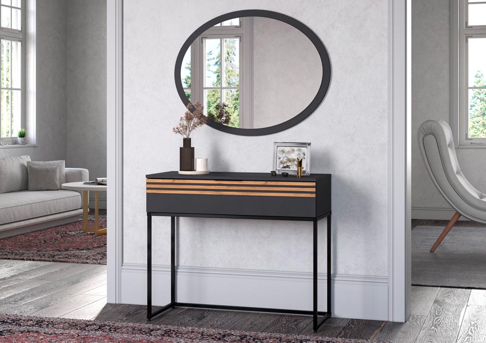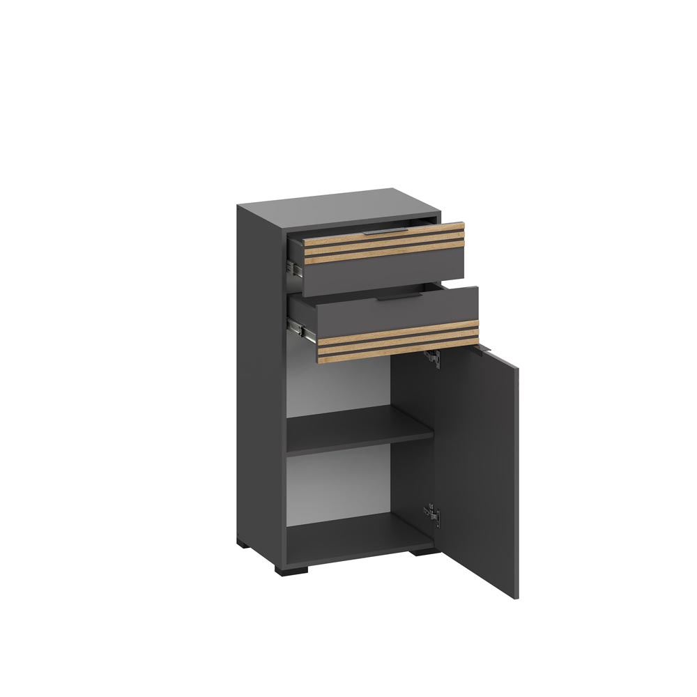 два выдвижных ящика с использованием механизма полного выдвижения и плавного закрывания, дно ящика выполнено из ЛДВП в цвет корпуса