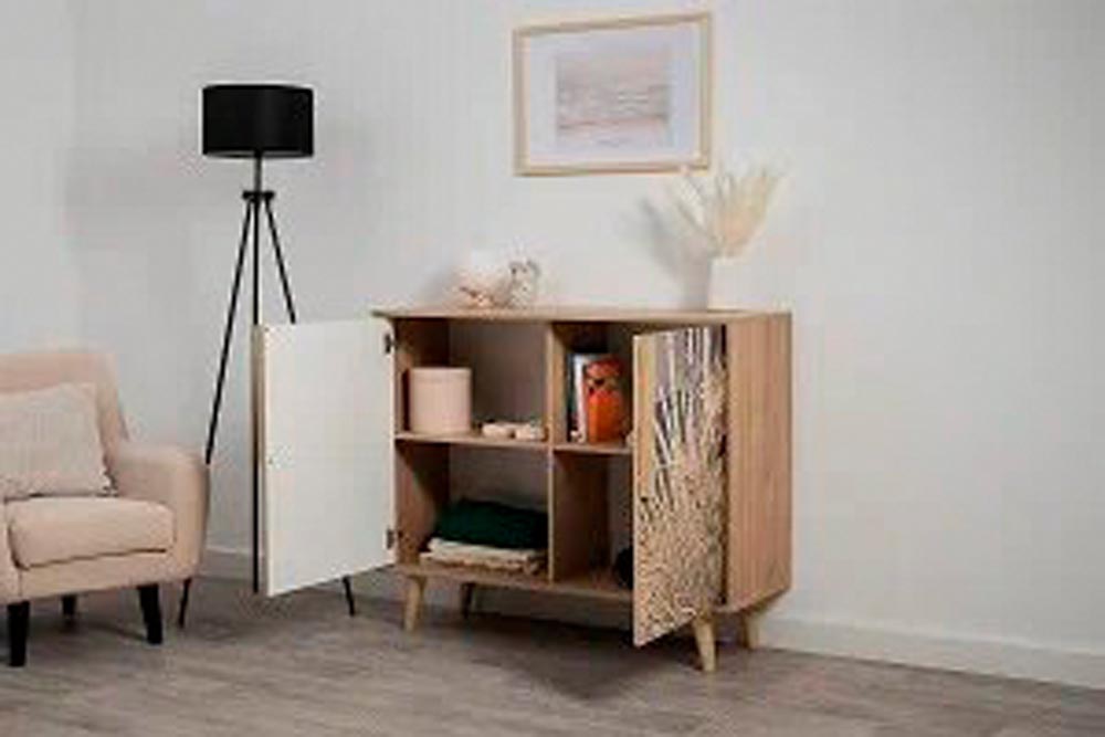 Комод Току 16.230.04 украшают фасады с фотопечатью в восточном стиле, и дополняют ручки и опоры из массива дерева. Вместительные отделения со съемными регулируемыми полками обеспечивают удобное хранение, а углубленные фасады придают конструкции стильную глубину.