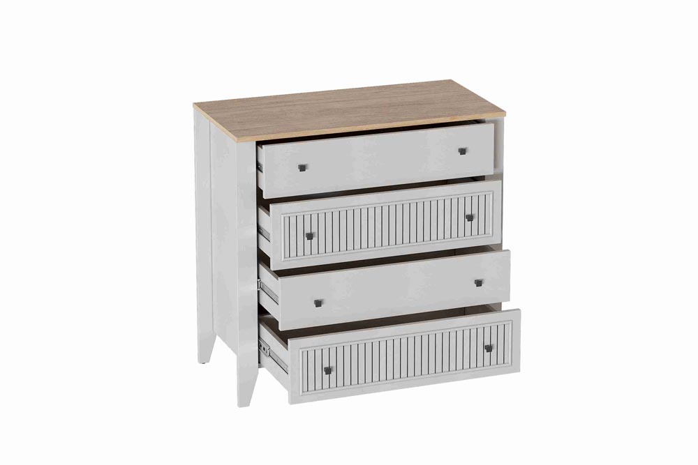 четыре выдвижных ящика с использованием механизма полного выдвижения и плавного закрывания, дно ящика выполнено из ЛДВП в цвет корпуса