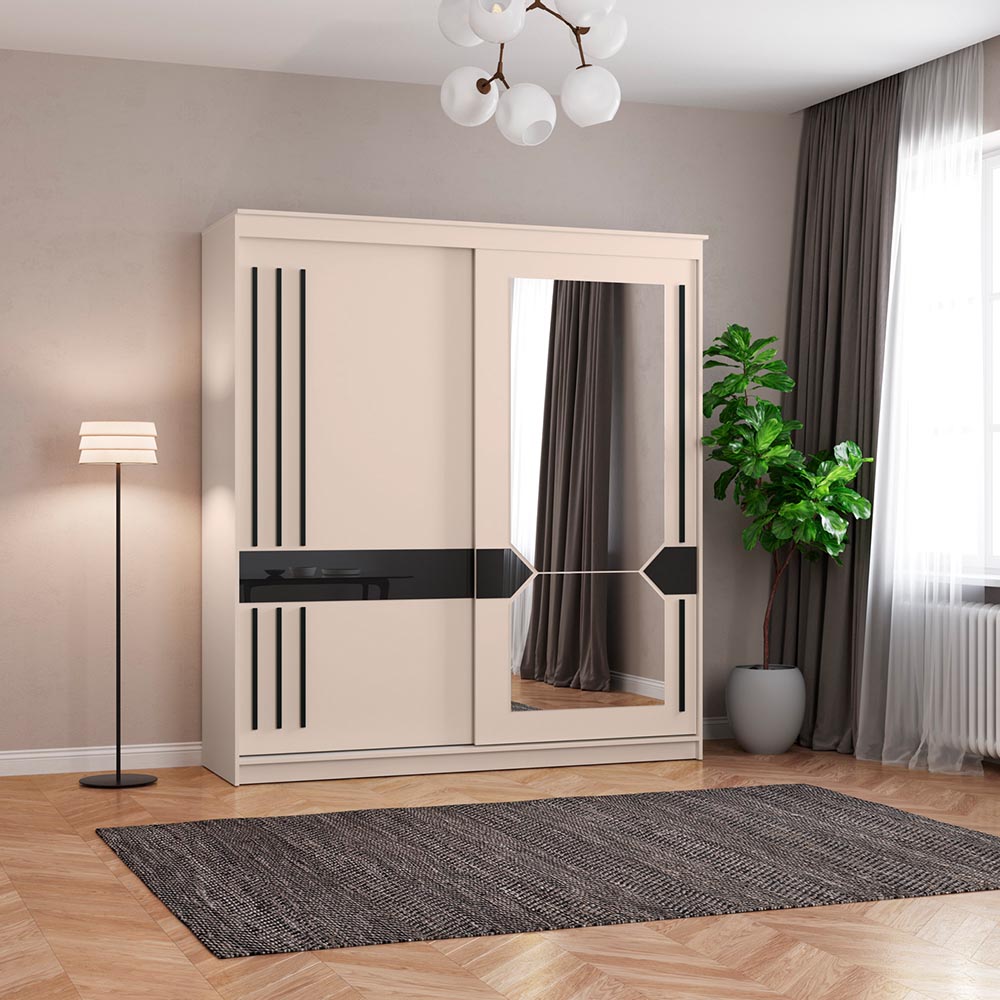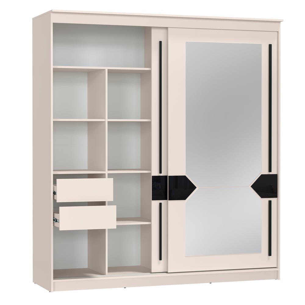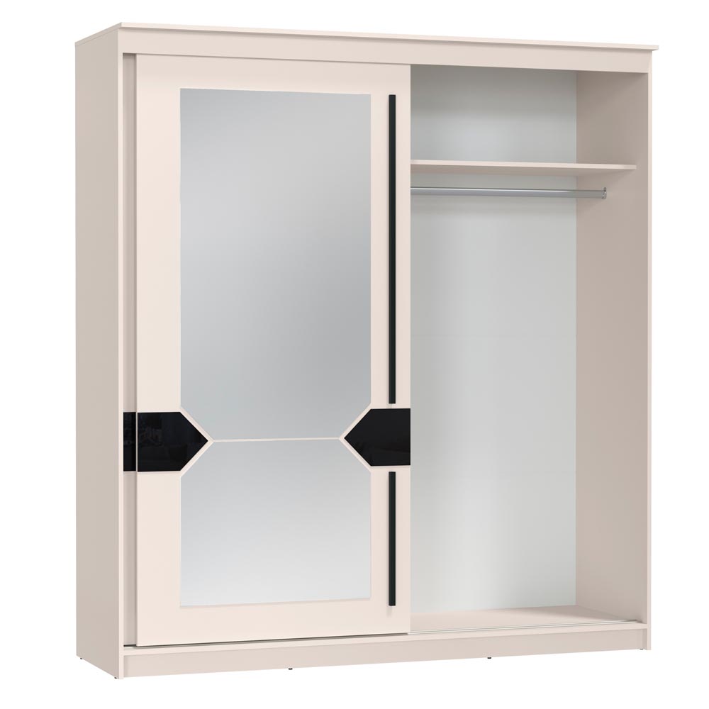 • - Прямой Светлый раздвижной шкаф имеет две двери ( одну глухую одну зеркальную )