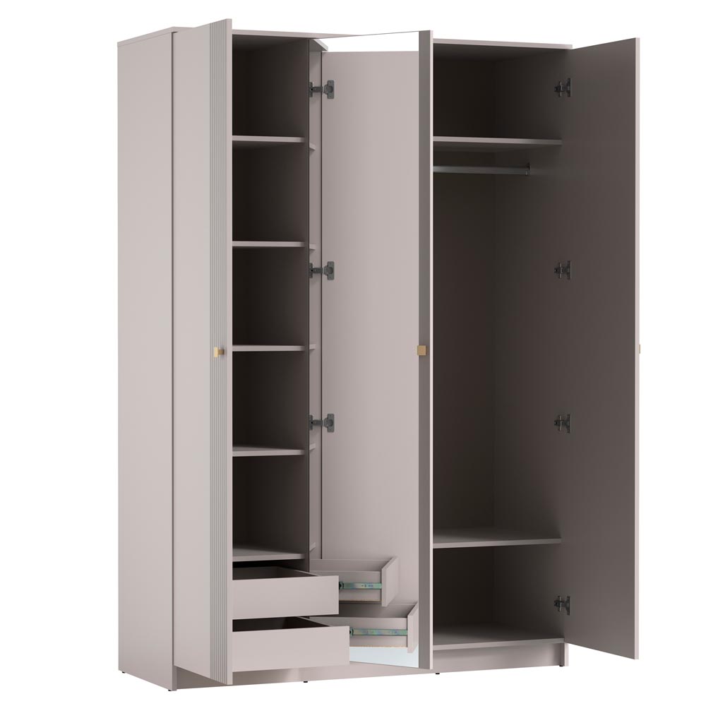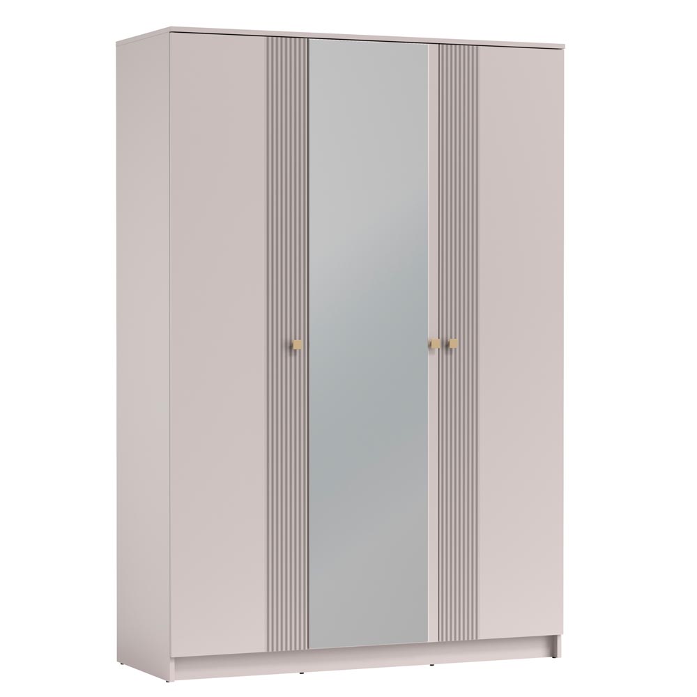 • - Прямой Светлый распашной шкаф имеет три двери ( две глухих одну зеркальную )