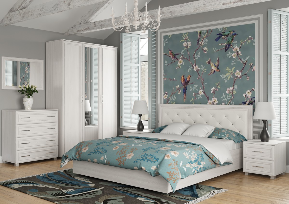 Элегантный спальный гарнитур «Прованс» привнесет в вашу спальню неповторимую атмосферу южной Франции. Гарнитур выделяется не только изящным оформлением, но и прекрасной функциональностью. Всего в комплект мебели «Прованс» входит 6 модулей, которыми вы можете украсить спальню.
