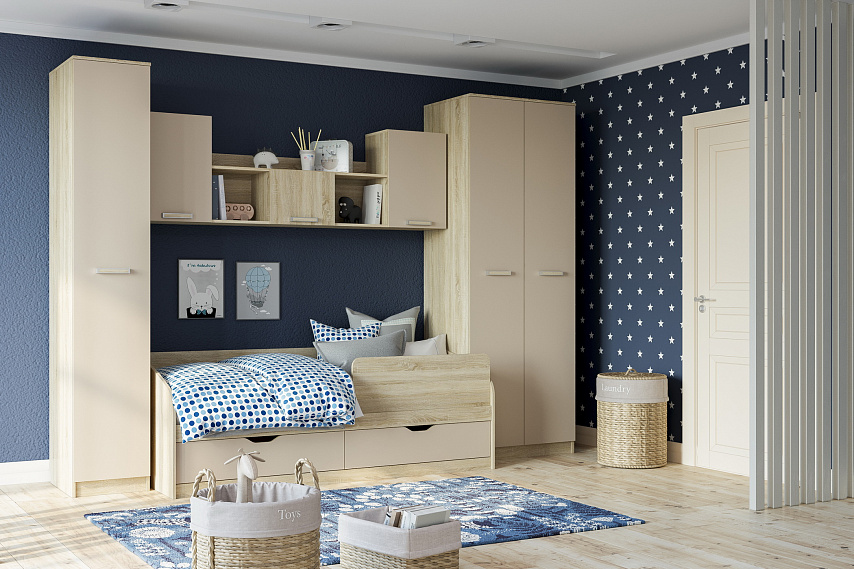 три выдвижных ящика с использованием механизма полного выдвижения и плавного закрывания, дно ящика выполнено из ЛДВП в цвет корпуса