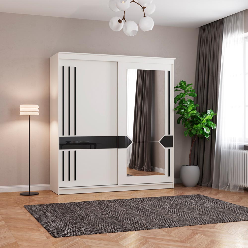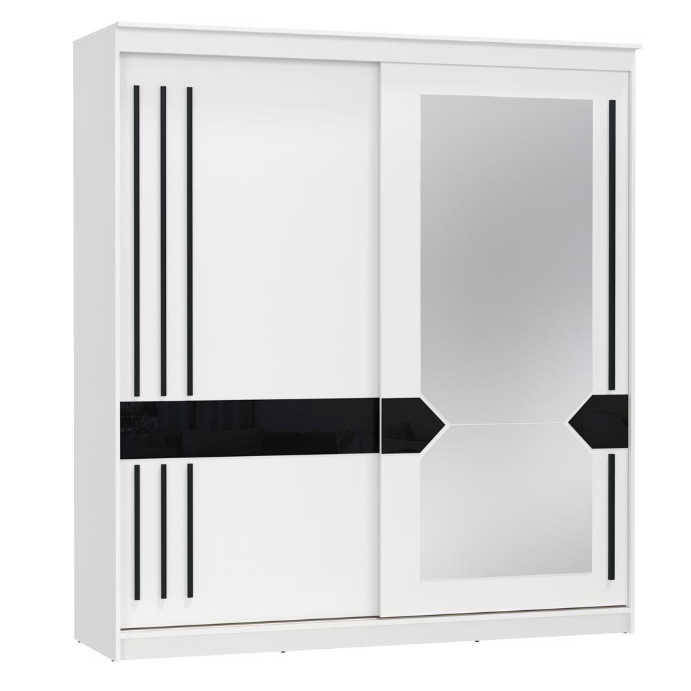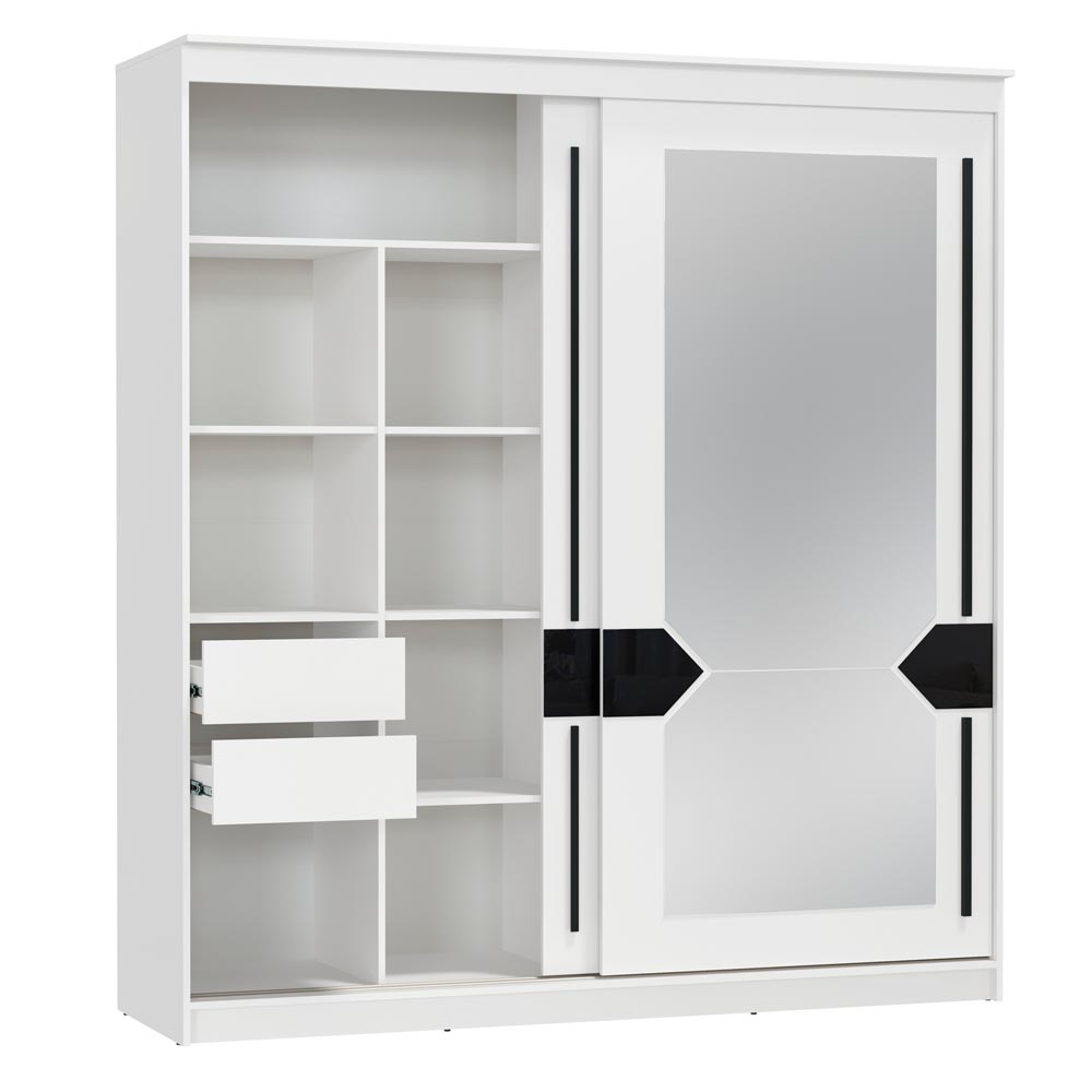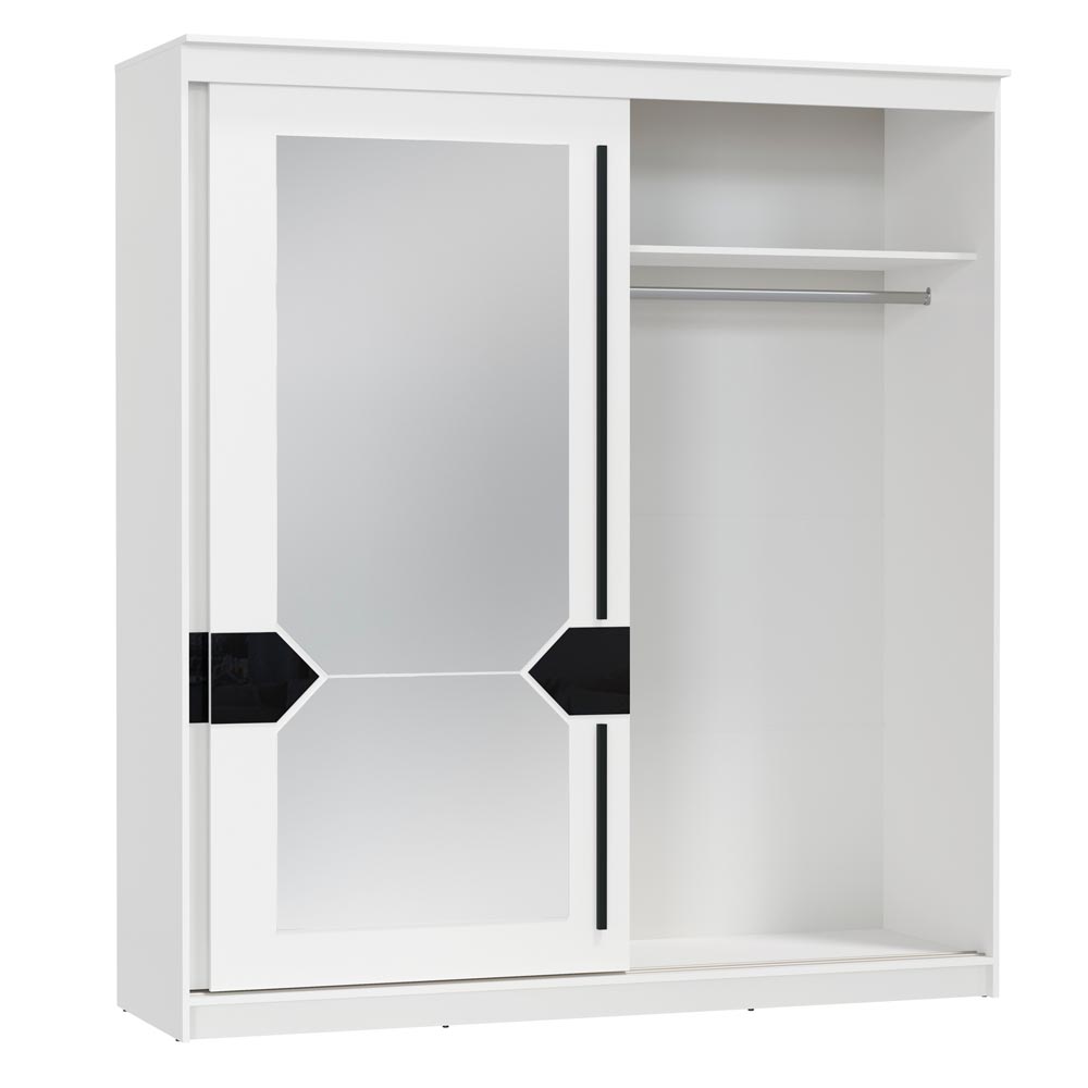 • - Прямой Белый раздвижной шкаф имеет две двери ( одну глухую одну зеркальную )