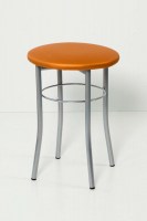 Круглый табурет для кухни с мягкой обивкой сиденья и металлическими опорами (гнутая труба). Это вариант простого табурета Лотос с декоративным кольцом, так же увеличивающим жесткость всей конструкции.