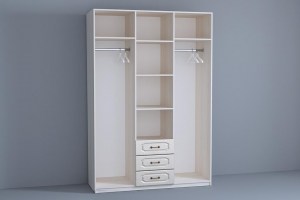 три выдвижных ящика с использованием механизма полного выдвижения и плавного закрывания, дно ящика выполнено из ЛДВП в цвет корпуса