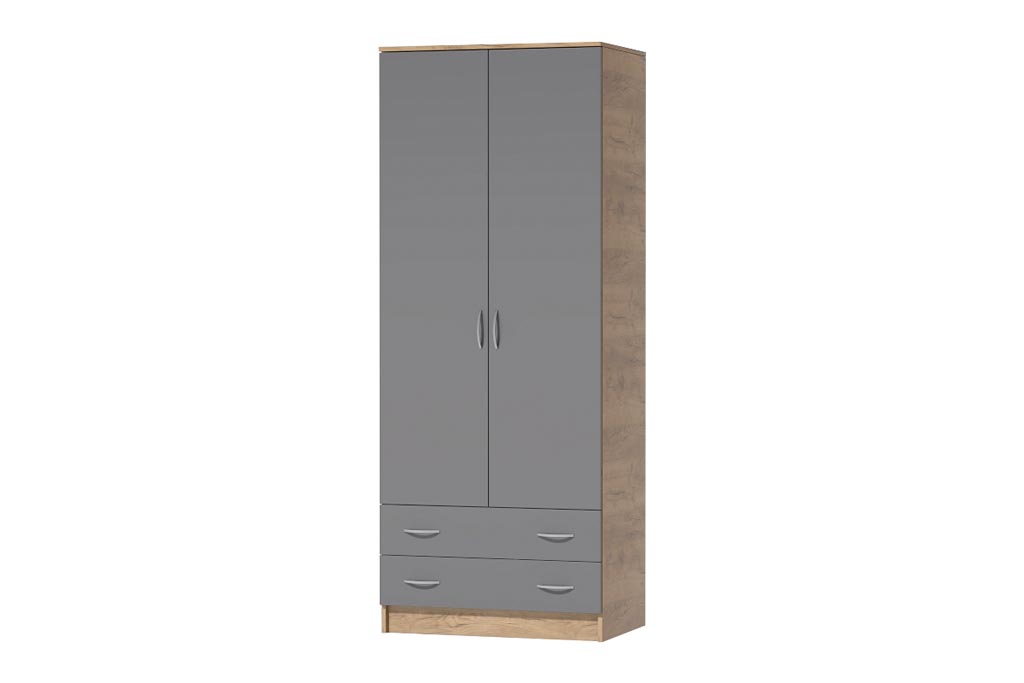 • - Прямой Комбинированный распашной шкаф имеет две двери ( две глухих ) два выдвижных ящика с использованием механизма полного выдвижения и плавного закрывания, дно ящика выполнено из ЛДВП в цвет корпуса