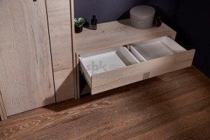 два выдвижных ящика с использованием механизма полного выдвижения и плавного закрывания, дно ящика выполнено из ЛДВП в цвет корпуса
