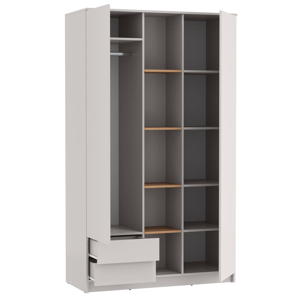 • - Прямой Комбинированный распашной шкаф имеет две двери ( две глухих ) два выдвижных ящика с использованием механизма полного выдвижения и плавного закрывания, дно ящика выполнено из ЛДВП в цвет корпуса