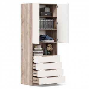 четыре выдвижных ящика с использованием механизма полного выдвижения и плавного закрывания, дно ящика выполнено из ЛДВП в цвет корпуса
