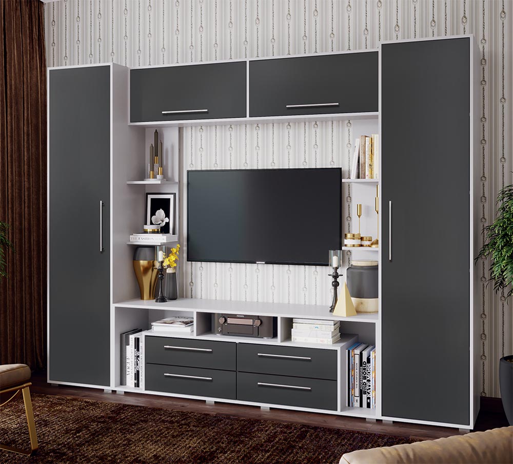 Вопросы и отзывы о товаре: Гостиная Гармония МДФ (Миф) Графит Софт/Белый