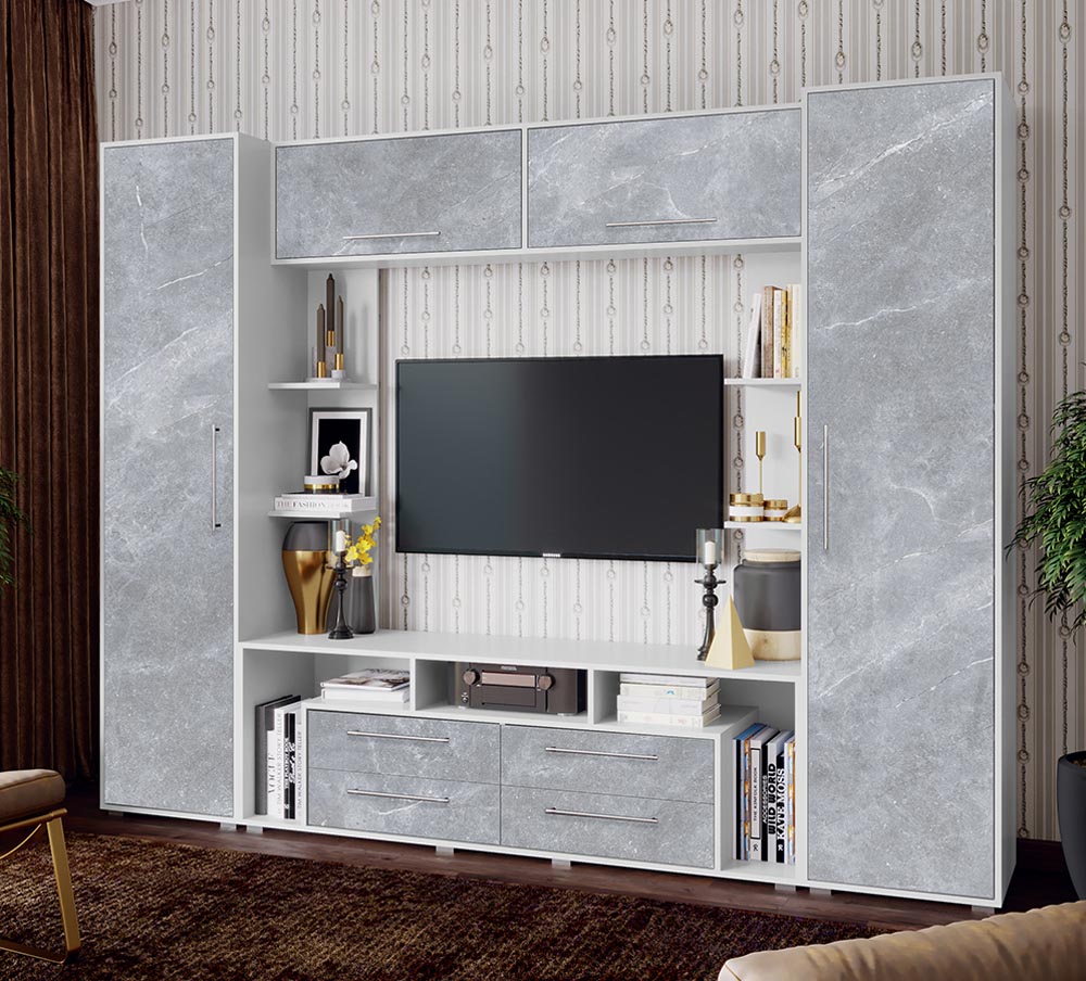 Вопросы и отзывы о товаре: Гостиная Гармония МДФ (Миф) Мрамор Глянец/Белый