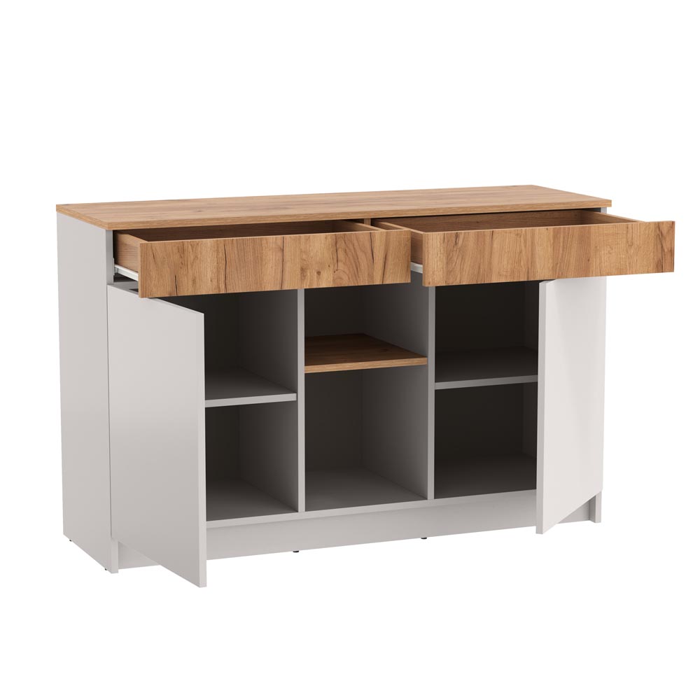 два выдвижных ящика с использованием механизма полного выдвижения и плавного закрывания, дно ящика выполнено из ЛДВП в цвет корпуса